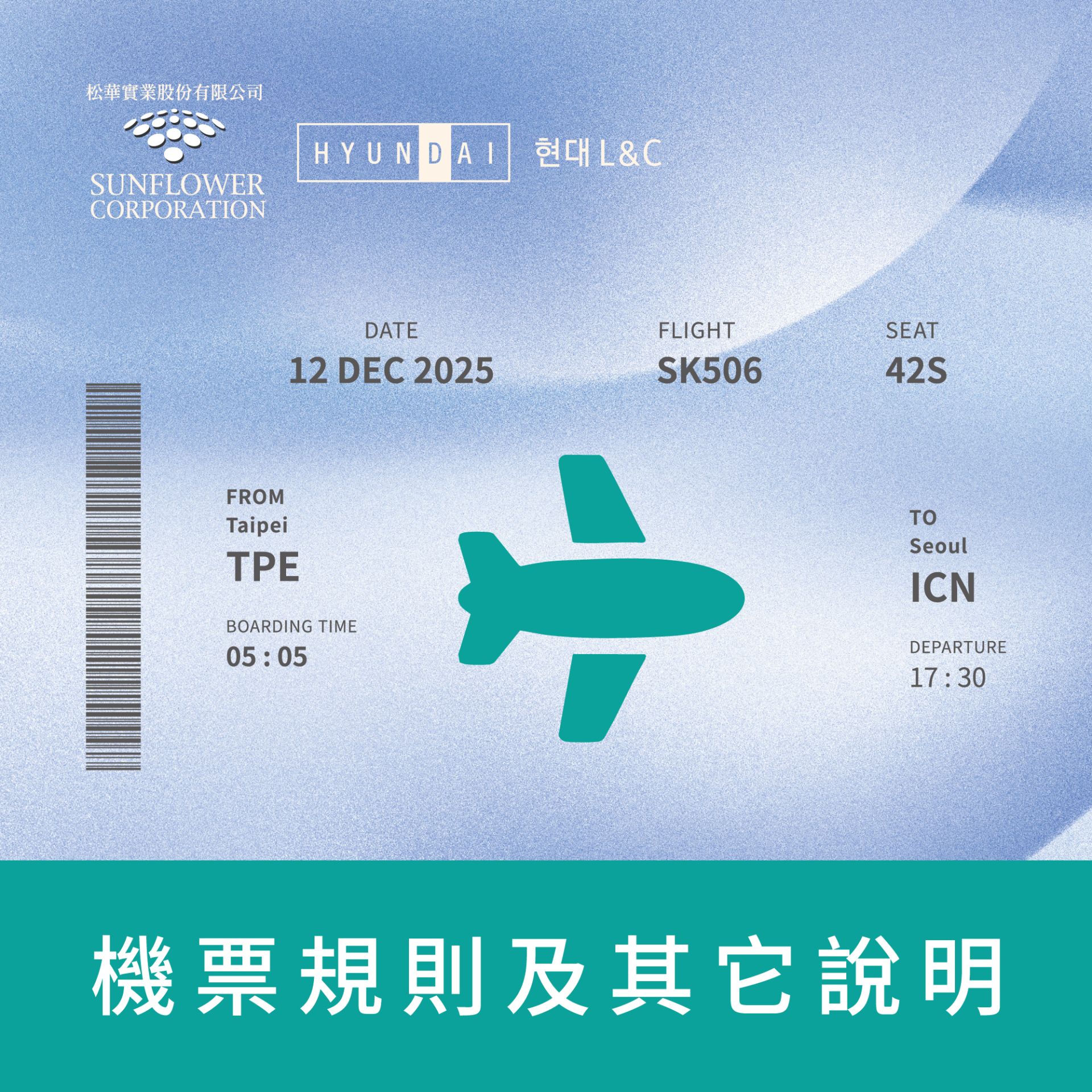 春節及寒暑假不適用,限松華指定之旅行社訂票。機票使用說明及改票規則依華航為主。